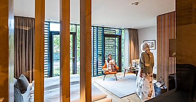 The spacious spa area forms the centrepiece of the hotel. Even from the pool you can enjoy a sensational view of the small river meandering along the trees, while an open fire crackles at the edge of the pool. Refreshments and snacks are available at the vitality bar, while the sauna area features a steam bath, a bio sauna, a Finnish sauna and a hammam. Another highlight is the large relaxation room with cosy corners and panoramic views of nature and the golf course. In the treatment area, guests are pampered with beauty and body treatments, Ayurvedic treatments and massages in a total of 12 cabins.