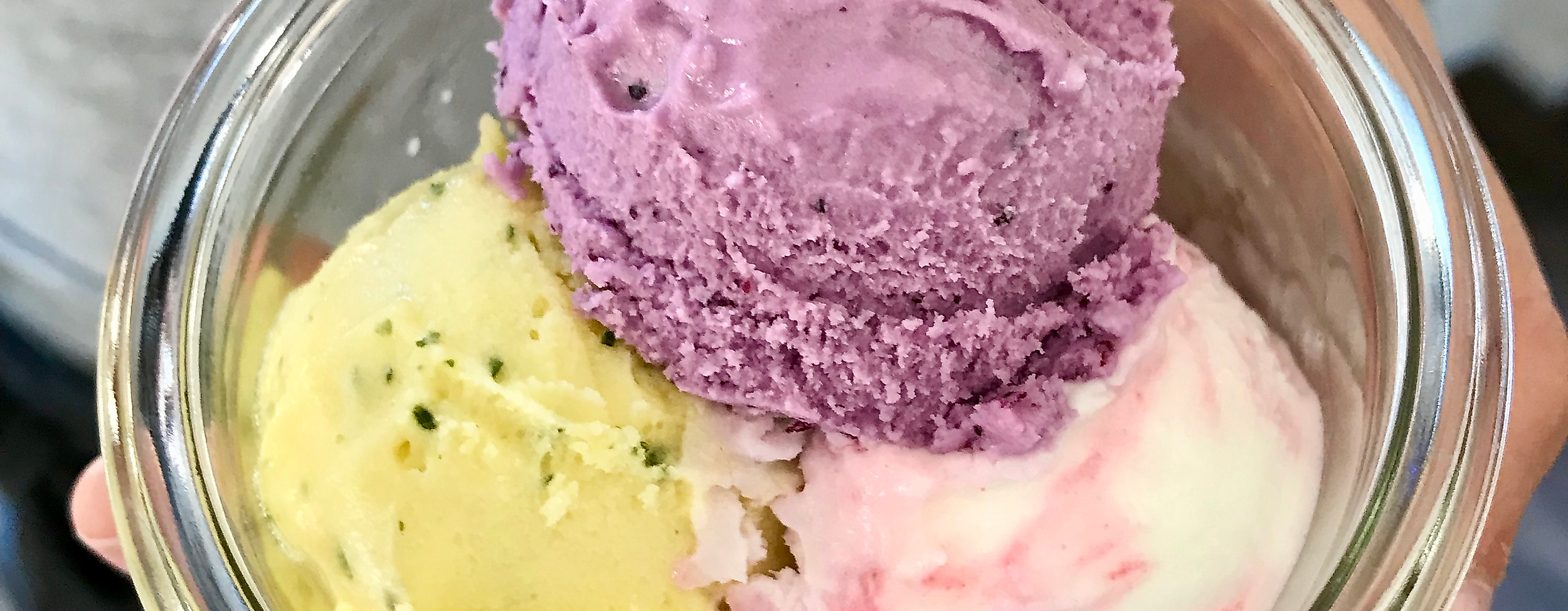The ball in the wafer, the ball in the croissant or the marble in the bag are also available as small versions - not only for children. Whoever takes a seat on one of the rustic benches outside or at one of the small tables inside will get his ice cream in the robust jar. Waste avoidance and sustainability are topics that the owners have also taken up the flag.