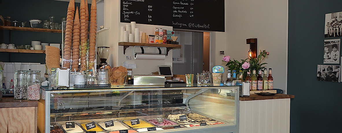 Eisbüttel offers ice cream made of fresh, natural ingredients and a stylish upcycling interior décor.