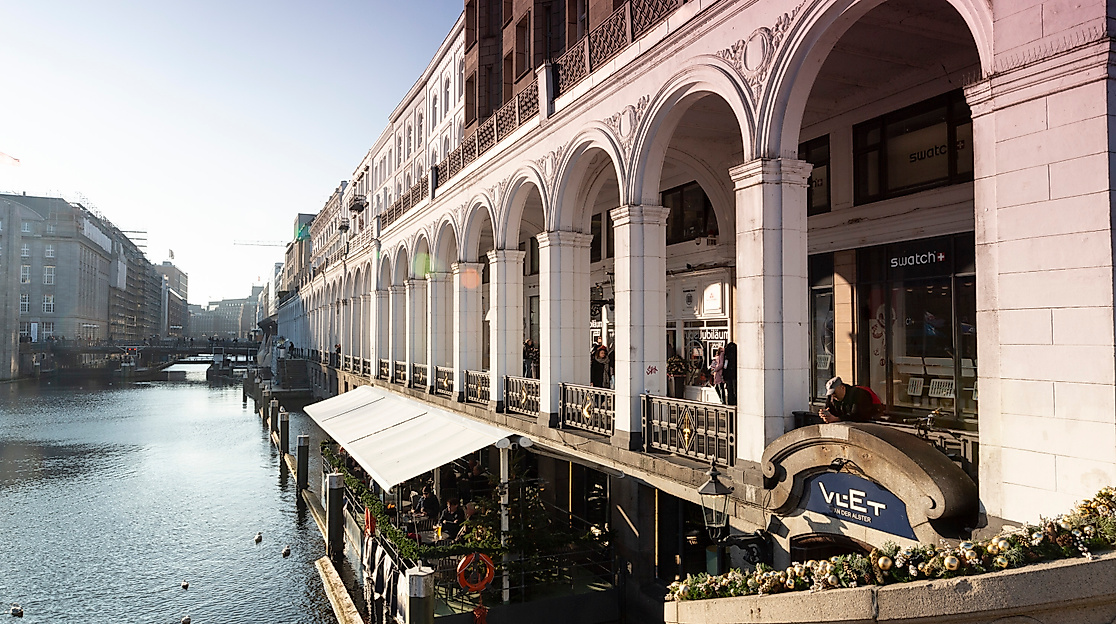Not far from the Alsterarkaden, Hamburg's shopping paradise is flourishing. Impressive buildings and noble brands fill the streets around the Alster with life. The Mellinpassage is enthroned amidst the hustle and bustle. It connects the Alsterarkaden with the Neuer Wall, an exclusive shopping street.