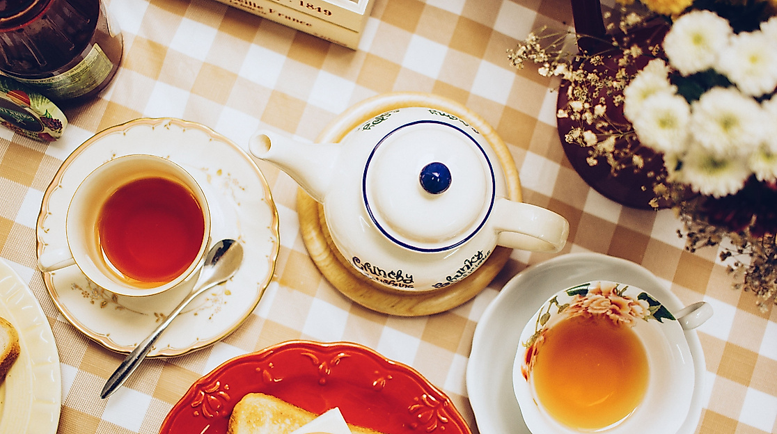 A lovingly furnished tea room awaits visitors.